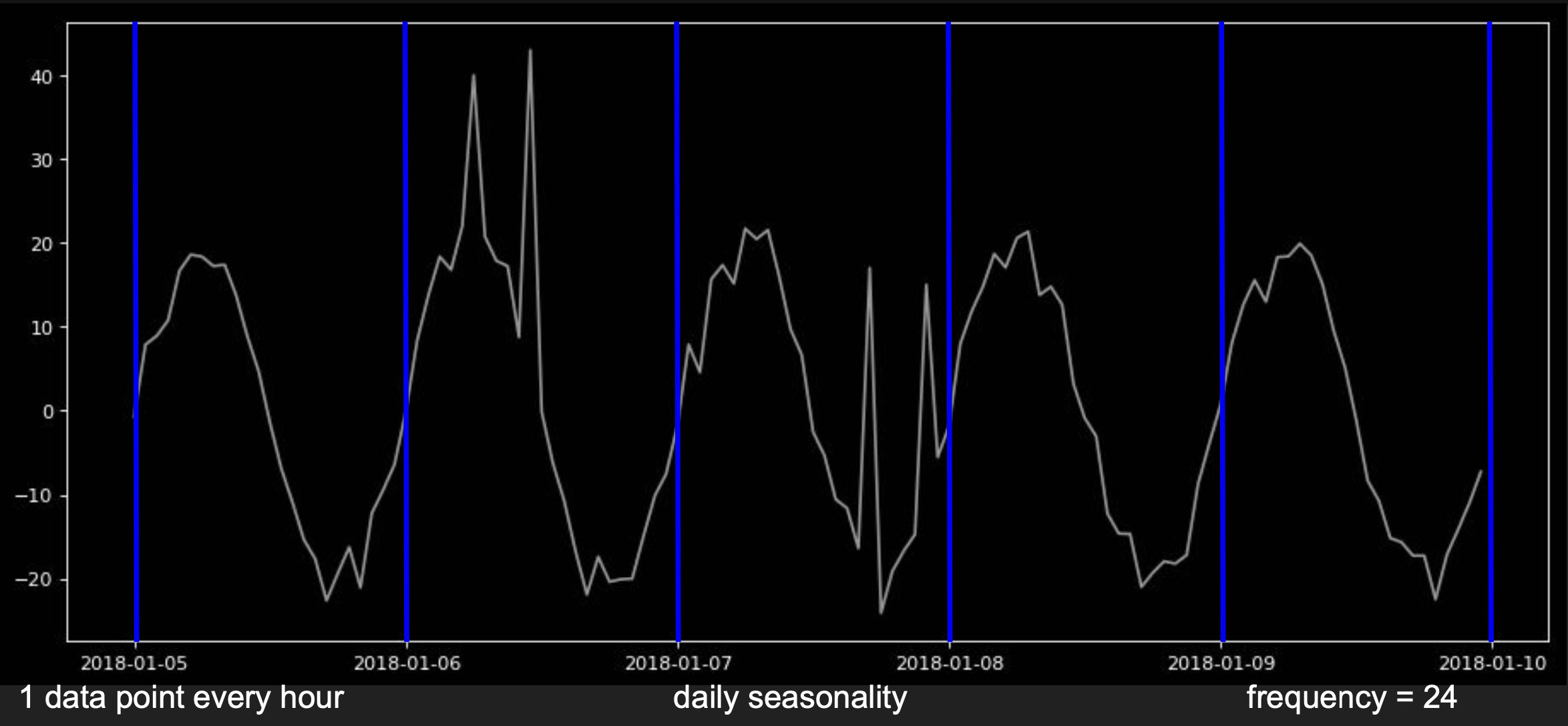 The \(frequency = 24\), 24 datapoints per day, 1 datapoint per hour.